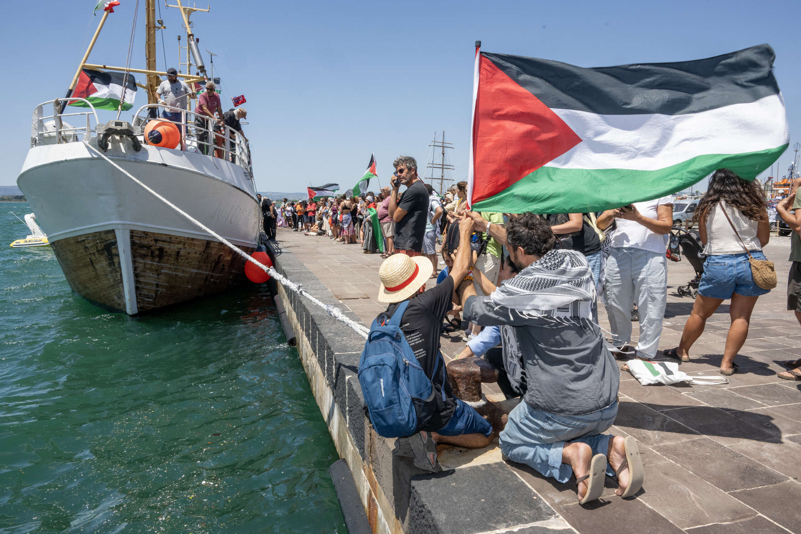 A Portuguese-flagged flotilla boat bound for Gaza was reportedly struck by a suspected drone off Carthage, Tunisia; passengers and crew are reported safe.