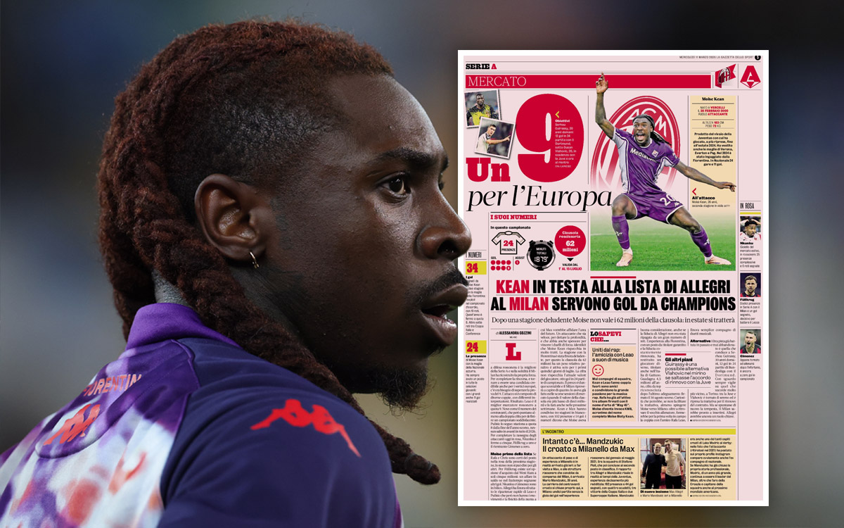 According to TMW, Milan have been monitoring Fiorentina striker Moise Kean in recent months. The Italian was coached at Juventus by Massimiliano Allegri, and he is a name that seems to unite the manager and the management, so much so that he has been scouted in depth.
