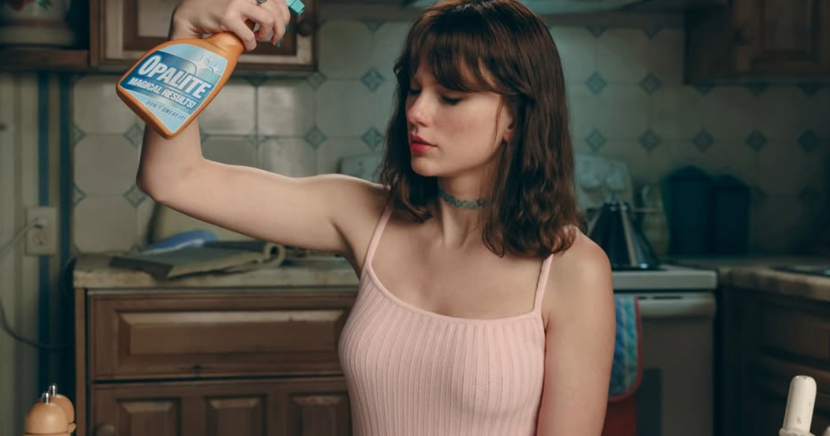 Taylor Swift released a '90s-themed "Opalite" video featuring celebrity cameos, characters attached to inanimate companions, and a plot centered on a transformative infomercial spray.