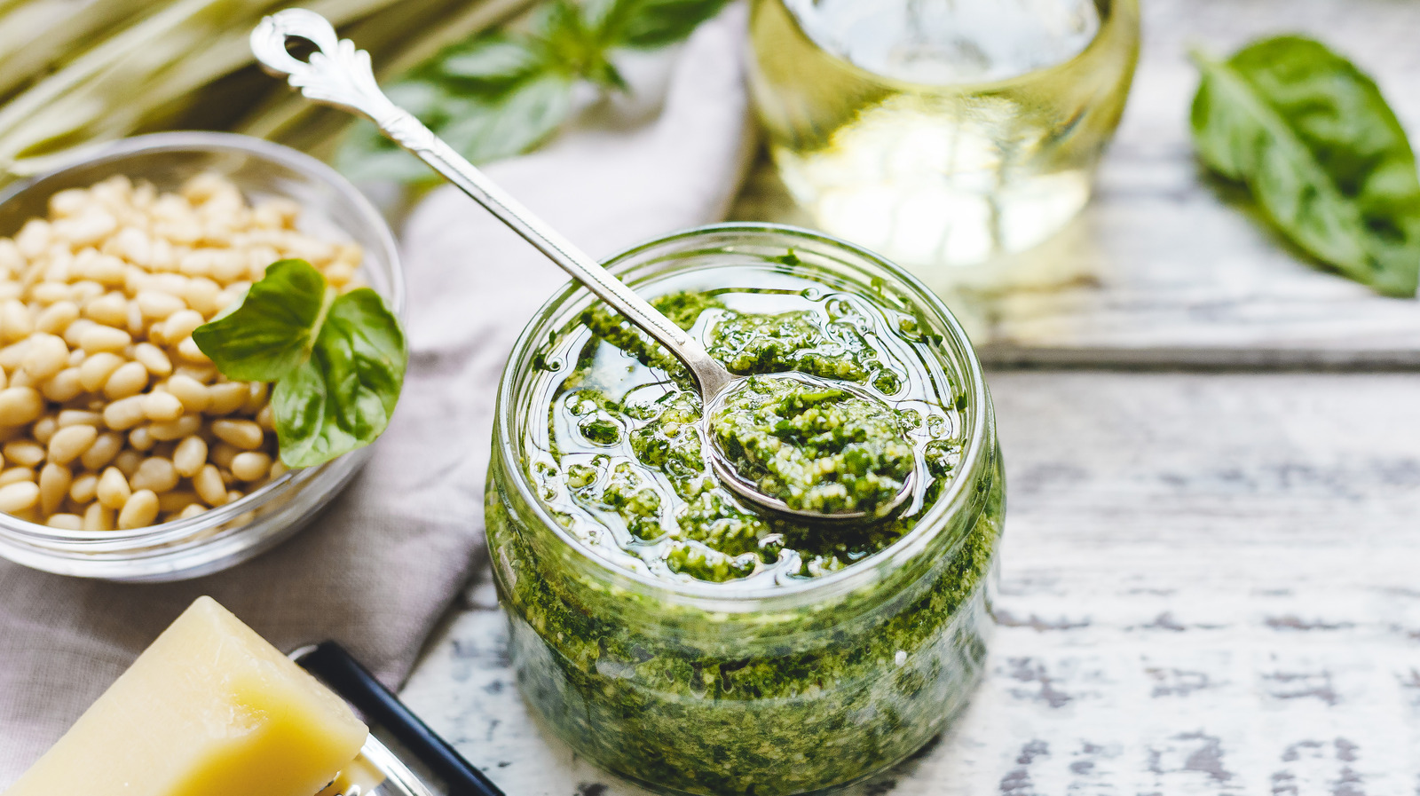 A classic pesto sauce, which typically includes a hearty helping of pine nuts, is now nearly impossible to create in its traditional format. With that said, there are a variety of clever swaps that prove why you shouldn't stick to pine nuts when making pesto. Walnuts make a particularly excellent substitution for pine nuts in a pesto sauce, given their more affordable price point and added nutritional benefits.
