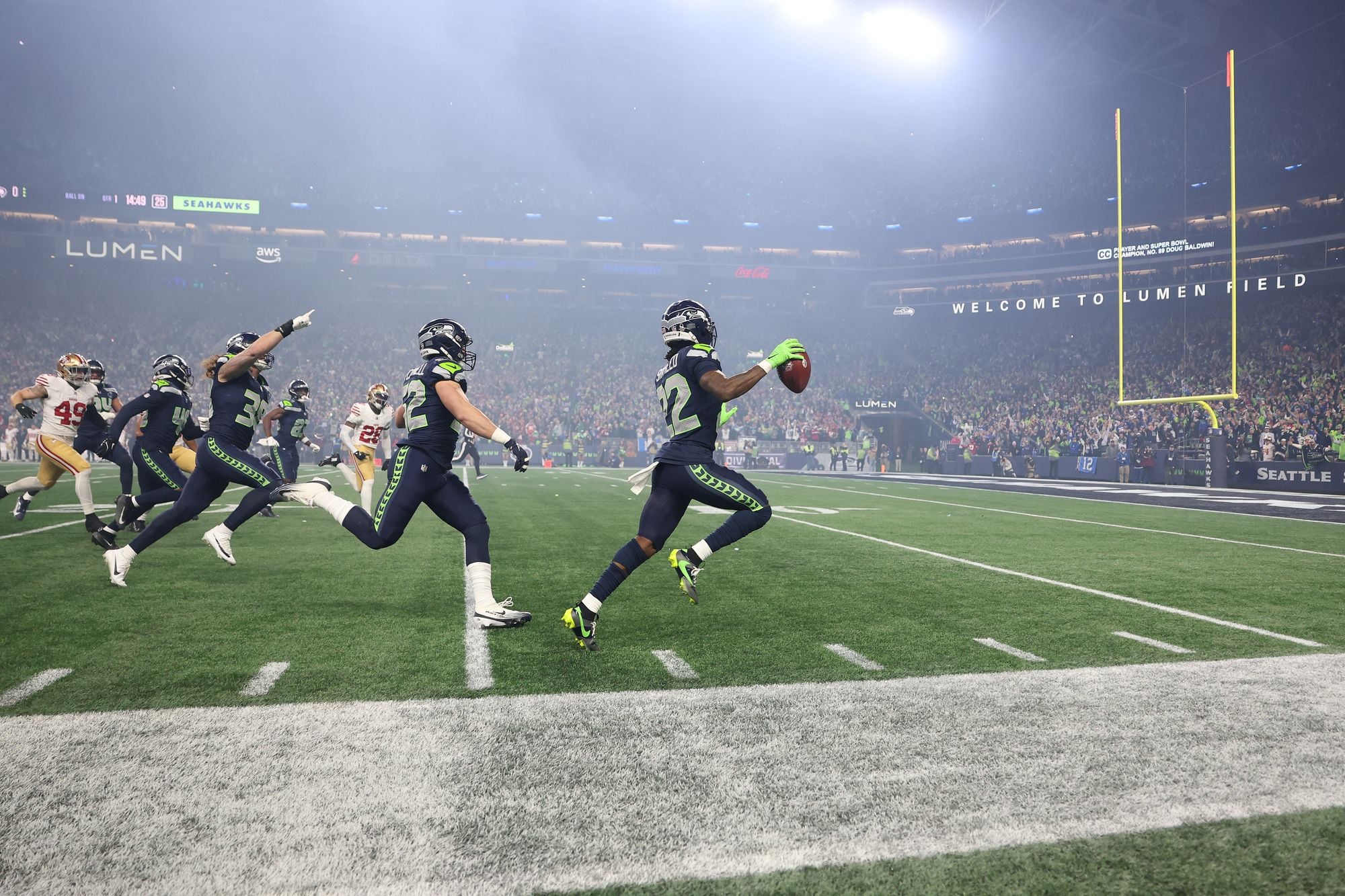 Not so tasty was tight end George Kittle sustaining an Achilles tear in the second quarter. That prompted Lynch, the Niners' ninth-year general manager, to visit the 49ers' fallen captain in the locker room, along with owner Jed York and Kittle's adoring wife, Claire. Rather than wait to hit the 49ers' sideline for the game's final minutes like usual, Lynch made his way there for the entire fourth-quarter fireworks, disguised by a ski cap.