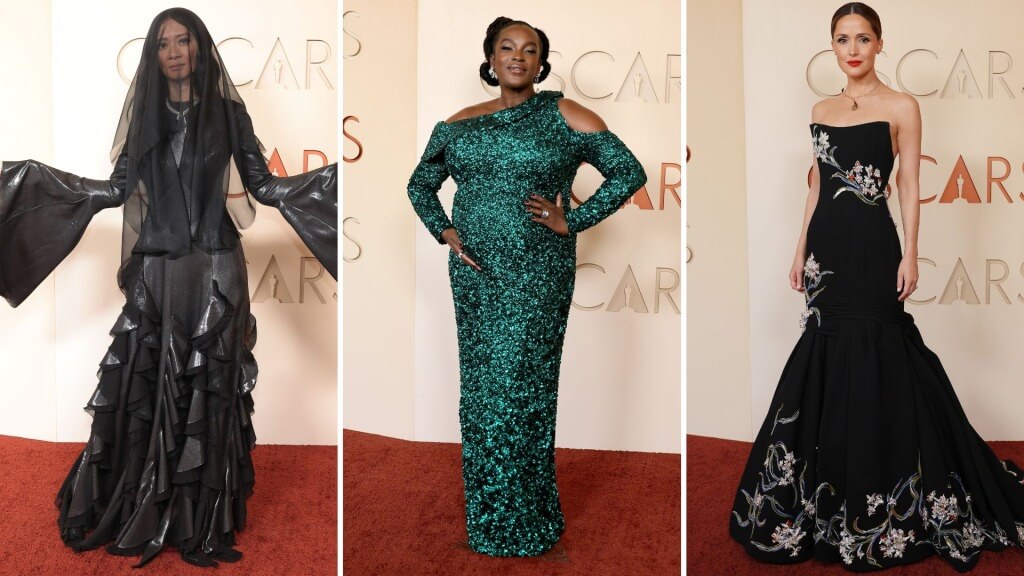 Jezebel's Oscars fashion critique highlights standout red carpet looks, praising dramatic designs like Arden Cho's embroidered sleeves and Chloé Zhao's dark crow-inspired gown while celebrating bold fashion choices that prioritize fun and creativity.