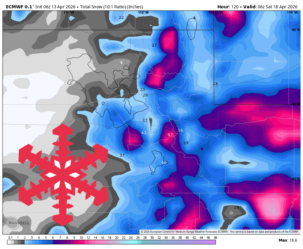 Oregon starts with denser snow and the best near-term accumulation at Mt. Bachelor and Timberline, then the whole Cascade chain turns colder as snow levels fall toward and below pass level during the midweek system.